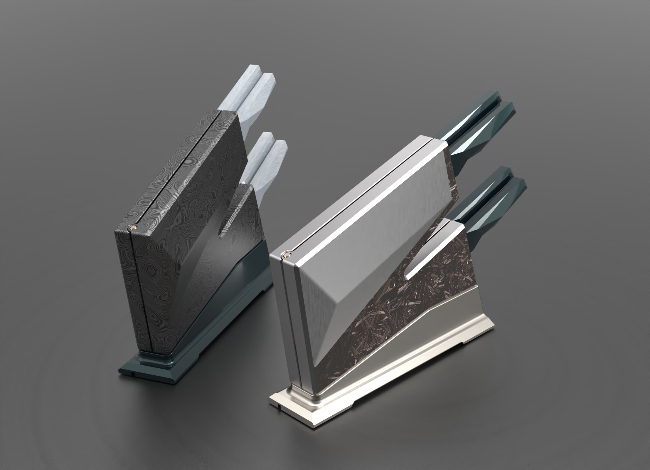 A minimalist, book-style knife holder designed for the modern kitchen. SAYA uses built-in UV light to sanitize each ceramic blade after use—no scrubbing, no bacteria. Just rinse, store, and let Saya handle the hygiene.